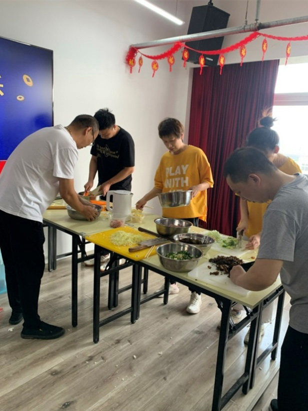 端着满满的劳动结晶去楼下的食堂下锅,体验着包饺子中的快乐,品尝着自己的劳动果实